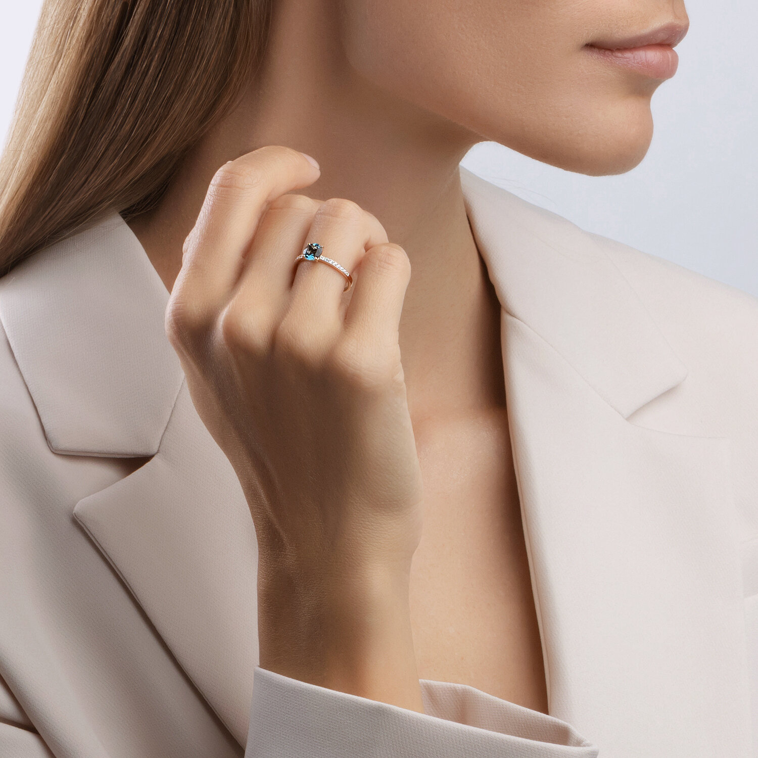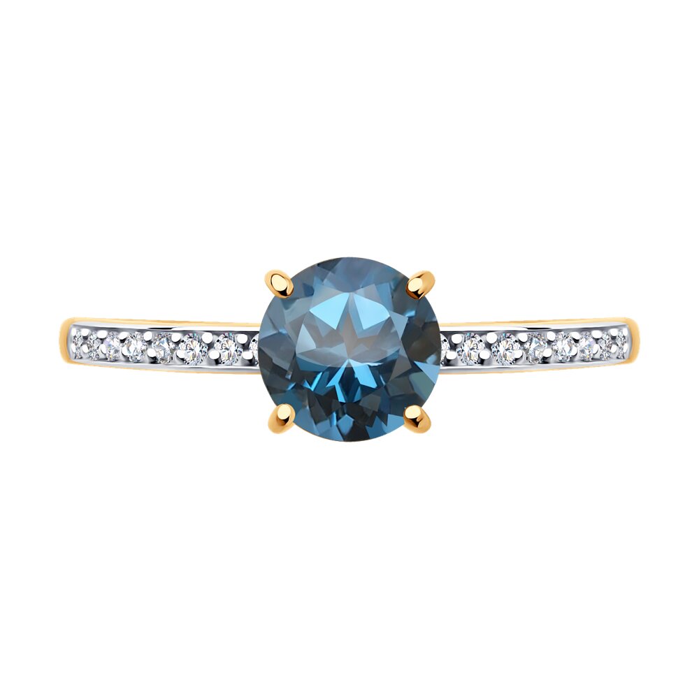 Кольцо из золота с лондон топазом и фианитами