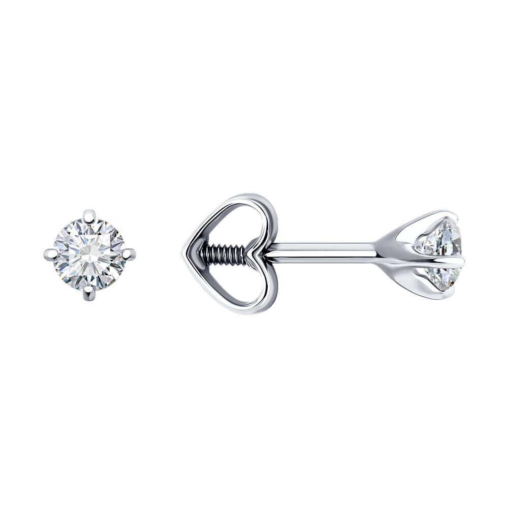 Серьга из белого золота с фианитом