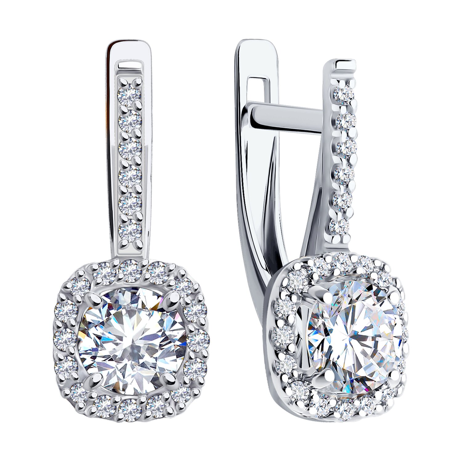 Серьги из белого золота с фианитами