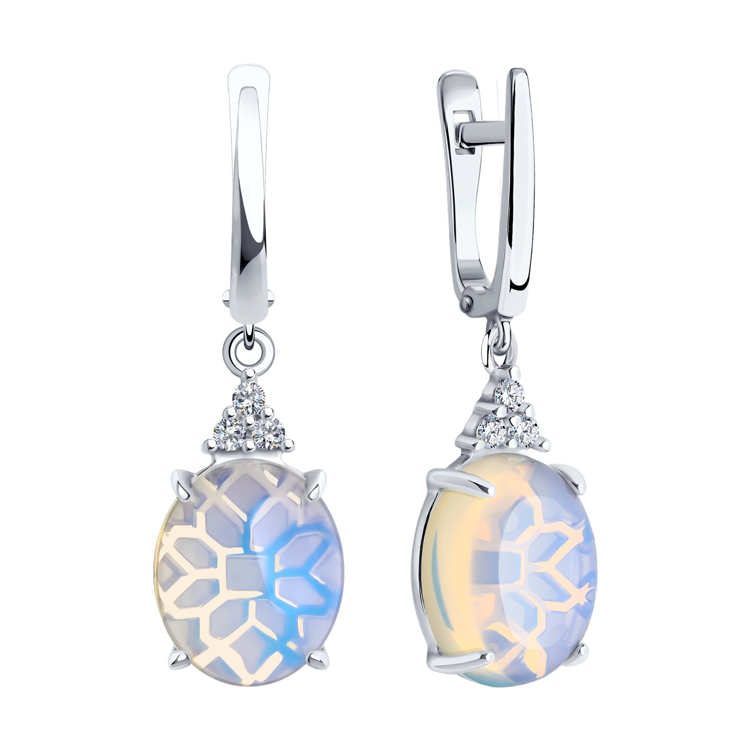 Серьги из серебра с опалитами и фианитами