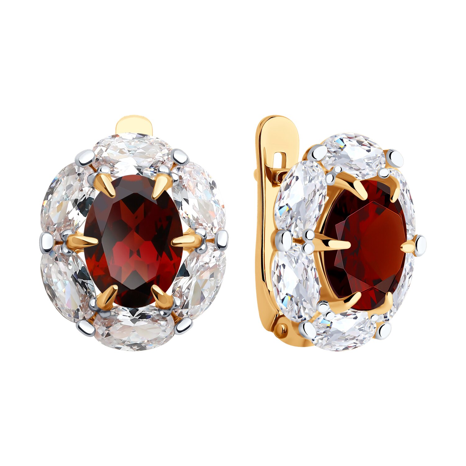 Серьги из золота с гранатами и фианитами
