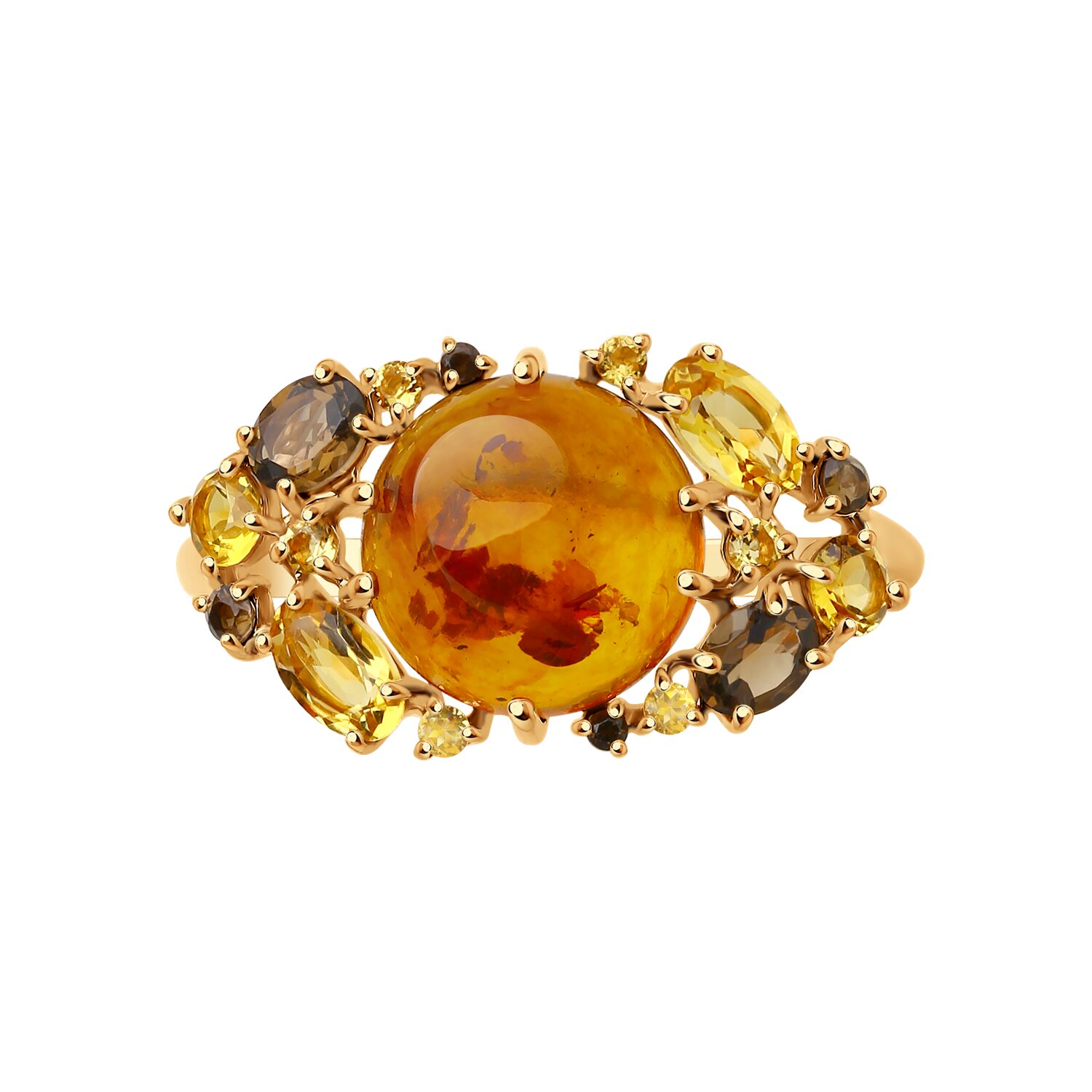 Кольцо из золота с янтарем и миксом камней