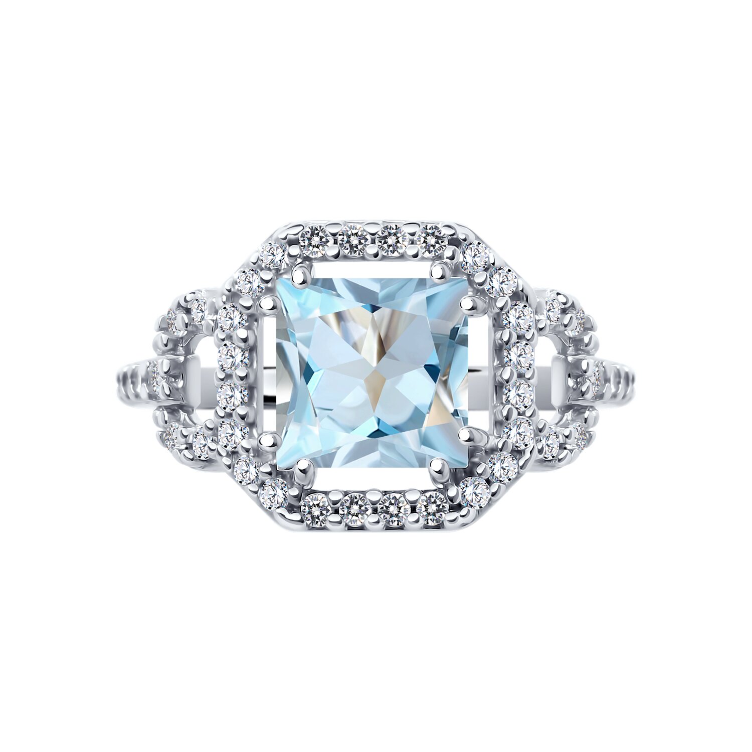 Кольцо из серебра с топазом и фианитами