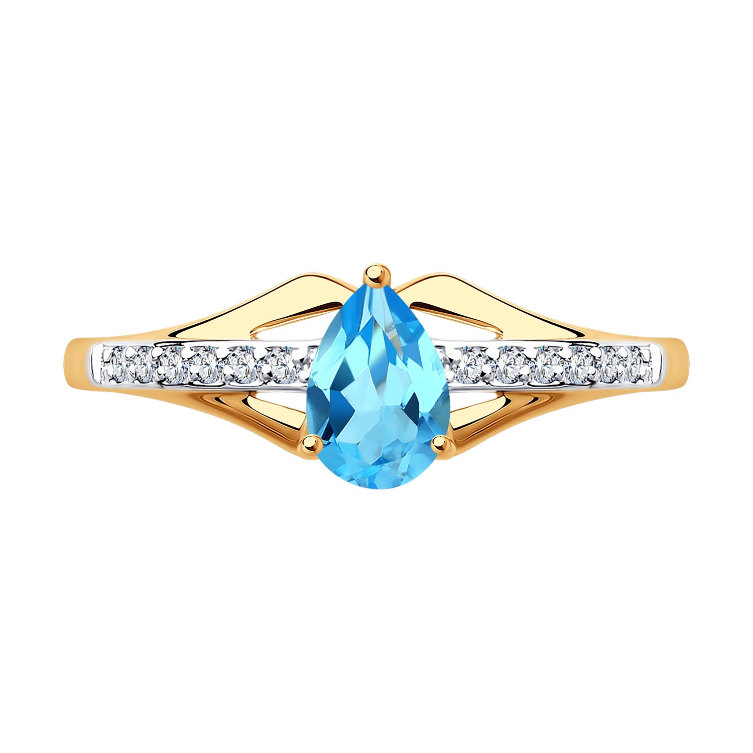 Кольцо из золота с топазом и фианитами
